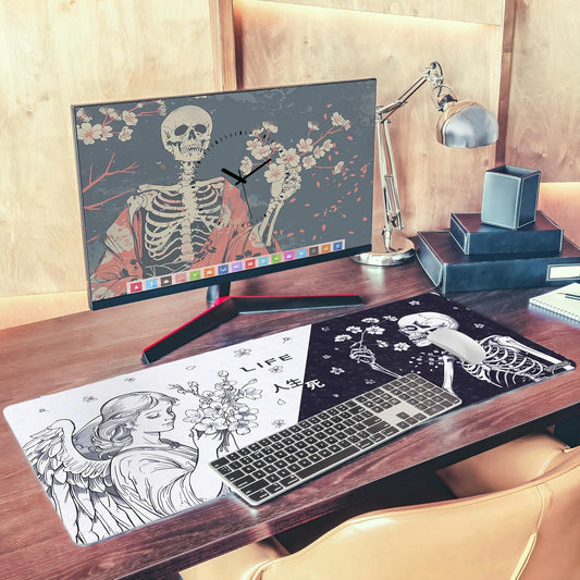 XXL Large Gaming Mouse Pad for Desk - Desk Mat for Keyboard and Mouse - PC Mouse Pad - Non-Slip Water Resist Rubber Base, Stitched Edges - 35.4X15.7 in - 90X40 Cm (Life&Death, Xx-Large)