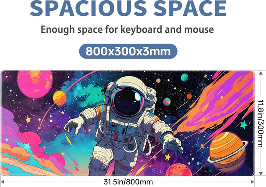 Spaceman Planets Anime Mouse Pad Large Desk Mat XL Mouse Pad Astronaut Keyboard Mousepad with Non-Slip Base and Stitched Edge Gaming Mouse Mat Desk Pad 31.5 X 11.8 in Mouse Pads for Desk Home Office