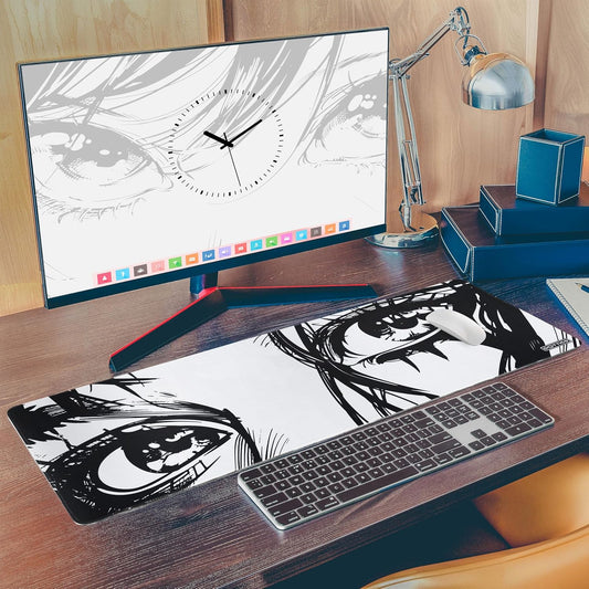 XL Anime Eyes Mouse Pad – Large Manga Girl Desk Mat 31.5X11.8 – Non-Slip, Water-Resistant, Stitched Edges – Aesthetic Japanese Gaming Mat